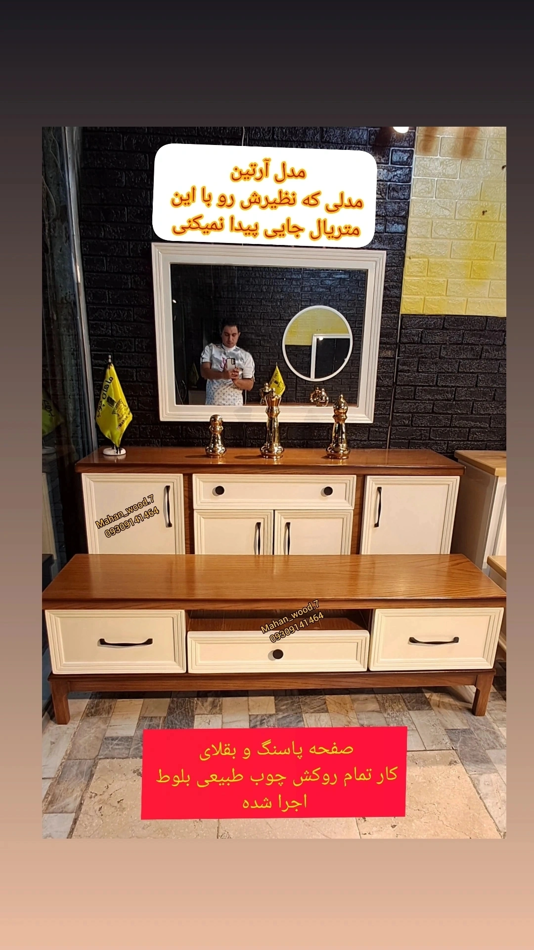 آینه کنسول و میز TV مدل آرتین – MDF با روکش چوب طبیعی، طراحی مدرن و شیک