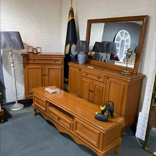 ☑️ ست کامل میز تلویزیون و آینه کنسول مدل کوئین فرانسوی با طراحی کلاسیک و شیک.